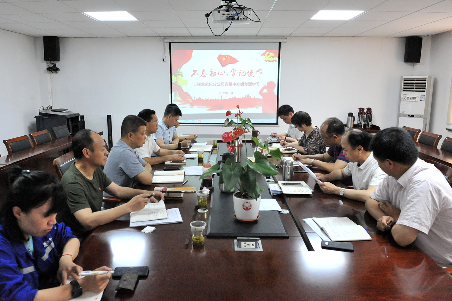 為積極響應黨中央關于在全黨開展“不忘初心,牢記使命”主題教育的重大部署,進一步錘煉廣大黨員干部忠誠干凈擔當的政治品格,樹牢“四個意識”,堅定“四個自信”,做到“兩個維護”,6月16日下午,中國五冶集團工程總承包分公司黨委在公司6樓會議室召開“不忘初心、牢記使命”主題教育中心組專題學習會,公司經理袁旭東主持會議,公司領導班子成員參加學習。