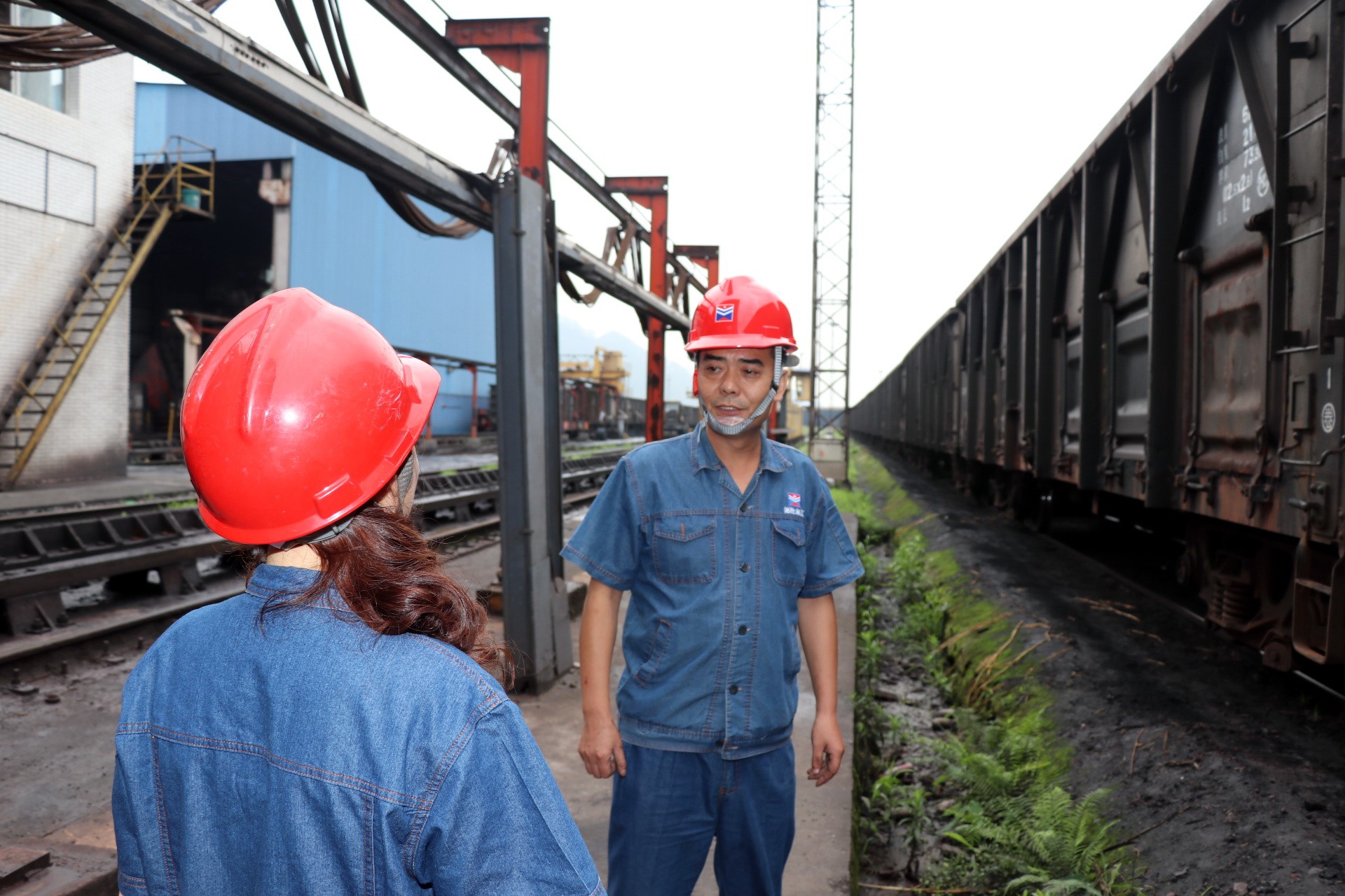 12點半火車就進來了,必須抓緊卸車,這不他正在了解中控人員現場檢查翻卸后的空車有無損害。干了十年的主操,去年開始帶了個徒弟,現在急的是希望徒弟成長能快點。