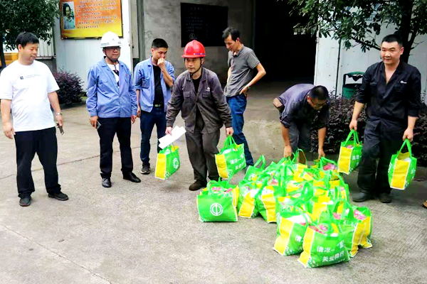 7月25日下午 ,正逢高溫酷暑之際,冷水江市總工會“千人幫千企”工作隊剛剛參加了全市上半年“千人幫千企”行動工作講評大會后,來到湖南博長控股集團有限公司三創富泰設備有限公司,在公司領導的陪同下,為正在棒線廠二扎車間搞大修的高溫崗位一線工人發放了綠豆、清涼油、正氣顆粒等防暑降溫物資。