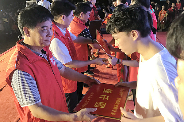 8月27日晚,由湖南省冷水江市慈善總會主辦、冷水江市民政局、市廣播電視臺承辦的2019年“愛心圓夢”特困大學生助學金發(fā)放儀式暨“善行銻都”第三季第二場面對面現(xiàn)場募捐大型活動在濱江公園中心廣場舉行,當晚,本次助學活動共發(fā)放助學金42.2萬元,用愛心和善心幫助了140名特困大學生寒門學子成功圓夢。冷水江市人民政府副市長伍龍光,冷水江市慈善總會名譽會長單位、冷水江鋼鐵有限責任公司黨委副書記、工會主席陳應斌頒發(fā)特別助學金。