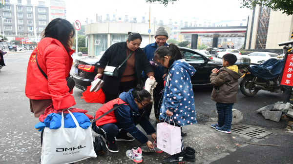 “這孩子可憐哪!”攬著孩子,捏著孩子單薄的衣服,黃艷憐惜地說道。這個小姑娘和她的弟弟無父無母,如今全靠年邁和體弱多病的爺爺照顧,窘迫的生活讓她和弟弟缺乏營養(yǎng)、發(fā)育不良,10歲的她看起來宛如一個7、8歲的孩子,令人憐惜。當黃艷了解到姐弟的情況后,她第一時間聯(lián)系義工聯(lián),并聯(lián)合愛心隊友鄔遠軍,決定共同助養(yǎng)李姓姐弟。看到小姑娘還穿著一雙鞋底嚴重脫膠的舊鞋,黃艷心疼地當即從帶來的愛心物資中拿出一雙嶄新的運動鞋給孩子穿上,又挑選了一大包過冬衣服交到孩子爺爺?shù)氖种小4┥蠉湫碌男?,孩子的臉上露出了羞澀的笑容。“正合適!”黃艷直起身子,滿意地說道,“走,孩子們,我?guī)銈兂燥埲?!?/span>