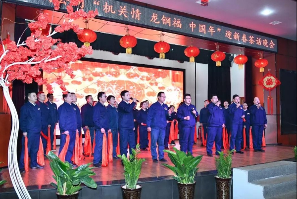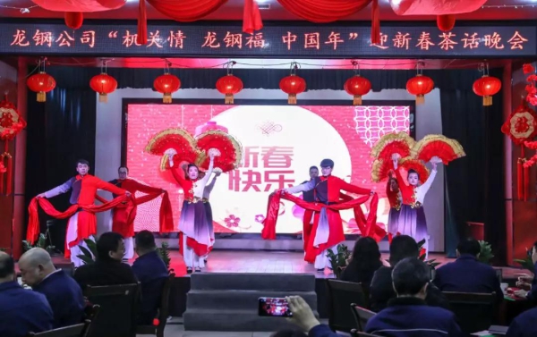 伴隨著歡快的富有活力的《盛世歡歌》舞蹈節奏,茶話會拉開了序幕。一幕幕紅紅火火的畫面閃過大屏幕,記載了全體龍鋼人攜手奮斗、共創佳績的一路精彩,昭示著一群富有朝氣與激情的龍鋼人,已經整裝待發,將努力奔向高質量發展新時代。