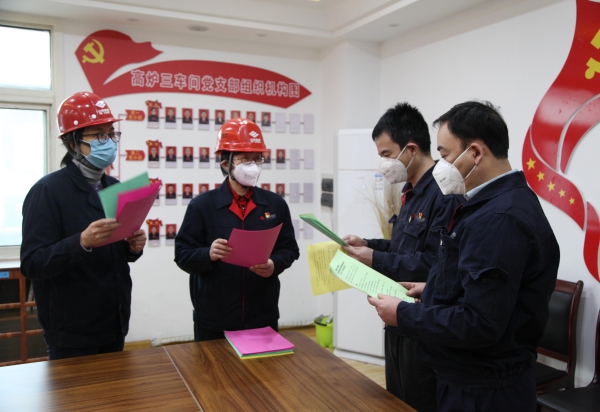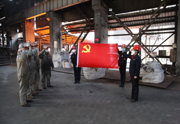 “讓黨旗在疫情斗爭一線高高飄揚,讓黨徽在疫情斗爭一線更加閃亮,加油!宣誓人:孔菊……”帶領黨員代表們宣誓的正是山鋼股份萊蕪分公司煉鐵廠高爐三車間黨支部書記孔菊。
