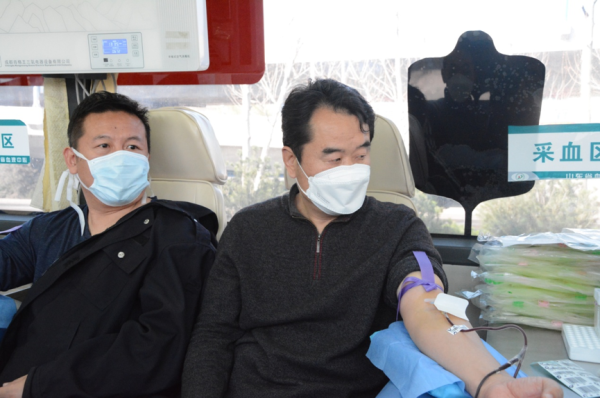 圖為兩家工會組織的職工獻血現場場景。