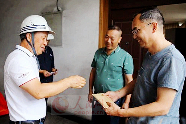 曹革新(左一)在棒線廠送勞動競賽獎勵。
