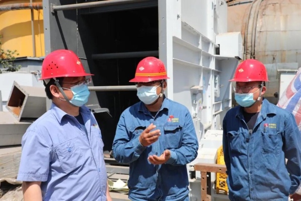 隨后,顧興鈞來到燒結(jié)煙氣綜合治理項目現(xiàn)場,通過現(xiàn)場查看和與現(xiàn)場工作人員交談,詳細了解工程項目進度,要求他們注意工程質(zhì)量和安全,做好夏季高溫的防暑降溫工作,加緊設(shè)備設(shè)施安裝驗收,確保環(huán)保項目按期完成。