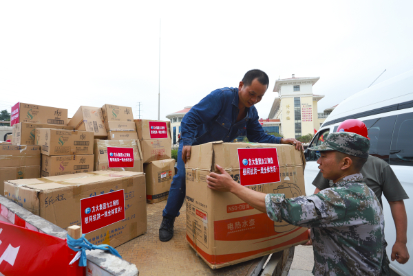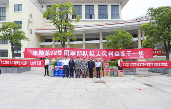 7月15日,方大九鋼董事長顏建新、黨委書記徐向陽率隊,到馳援湖口的東陸第72集團軍相關部隊駐地進行慰問,主動為官兵送去了1200份牙膏、牙刷、毛巾、沐浴露等生活物資以及面包、水等1200份干糧,價值3萬余元。
