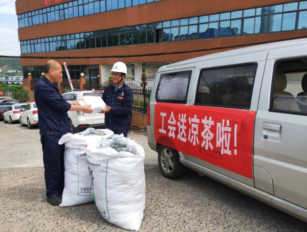 “似乎去年涼茶的甘甜味道還留在口中,今年就又收到了新的涼茶,心里感覺十分的舒爽。”一名班組員工喝了一大口涼茶后笑著說道。