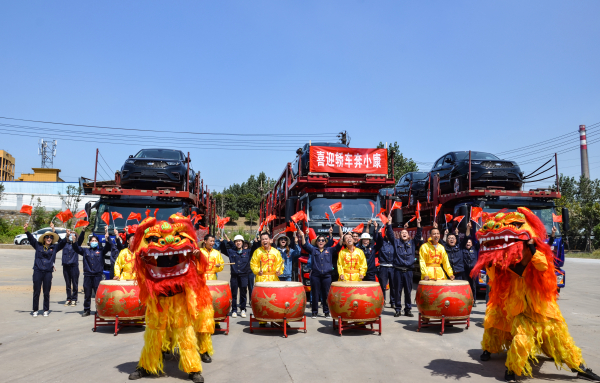 企業員工喜笑顏開迎轎車