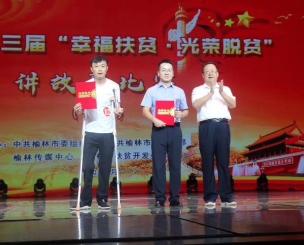 聽(tīng)了駐村干部的脫貧方案,小伙子起初半信半疑,郭愛(ài)國(guó)看出了他不自信,隔三差五地給他做思想工作,為他講述那些殘疾人的感人勵(lì)志故事,幾經(jīng)周折,最終讓他放下戒心,打開(kāi)心扉,接受了這個(gè)脫貧金點(diǎn)子,很快,劉榆的綏德縣瑞雨電商服務(wù)部注冊(cè)成立了,獲得了綏德縣殘疾人聯(lián)合會(huì)1萬(wàn)元的殘疾人創(chuàng)業(yè)補(bǔ)助金,陜北大棗、土豆粉、黃豆、小米等特色農(nóng)副產(chǎn)品通過(guò)他的小店銷往全國(guó)各地。2019年,駐村干部再次通過(guò)殘聯(lián)送他參加殘疾人技能培訓(xùn),精湛的開(kāi)鎖技術(shù)讓他很快又注冊(cè)成立了綏德縣“快快快”開(kāi)修鎖服務(wù)部,村委會(huì)還為他低價(jià)提供了一間臨街店鋪,讓他安心經(jīng)營(yíng)。2020年9月,在陜西省榆林市“幸福扶貧?光榮脫貧”講故事比賽中,劉榆講述的勵(lì)志脫貧故事感動(dòng)了每一名現(xiàn)場(chǎng)聆聽(tīng)的人,他的扶貧故事演講獲得了“一等獎(jiǎng)”。他表示,這兩年在駐村工作隊(duì)、村兩委和駐村干部的大力協(xié)助和自己的努力下,他的生活發(fā)生了翻天覆地的變化,電商、村里的分紅、光伏產(chǎn)業(yè)的公益性崗位、開(kāi)修鎖、每年喂養(yǎng)的雞賣土雞蛋,所有這些加在一起收入相當(dāng)可觀,腰包鼓了,底氣有了,過(guò)去那種墮落的陰霾被陽(yáng)光的笑臉一掃而空。