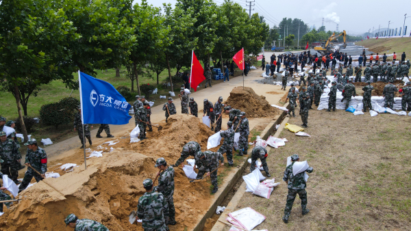 隊伍練得出來,更要頂?shù)蒙先ァ7酱缶配搱詻Q發(fā)揮民兵組織在遂行搶險救災任務中的重要作用,狠抓平常準備,強化相關(guān)保障,不斷提高民兵應急反應能力和服務社會的能力,形成軍地合力,切實讓民兵隊伍“拉得出、用得上、打得贏”。2016年,方大九鋼停產(chǎn)在廠區(qū)開渠泄洪,民兵、預備役隊員與馳援湖口部隊一起抗洪救災,部隊凱旋前給企業(yè)送來“軍民攜手抗洪搶險,魚水情深再譜新篇”牌匾。在今年疫情期間民兵主動承擔公司消毒防疫工作,2月份民兵隊員主動協(xié)助公司做好人員管控、入廠測量體溫等防疫工作;7月份防汛期間,在湖口縣武裝部的統(tǒng)一指揮下,包括方大九鋼在內(nèi)的方大鋼鐵三家企業(yè)出動400余名民兵、骨干,圓滿完成了長江堤壩工業(yè)園段巡堤、挖導滲溝、裝運沙袋碼支墩、裝運沙袋堵涵管等任務,與抗洪部隊一起并肩抗洪,受到前來視察防汛工作的東部戰(zhàn)區(qū)司令員何衛(wèi)東上將的高度贊揚。