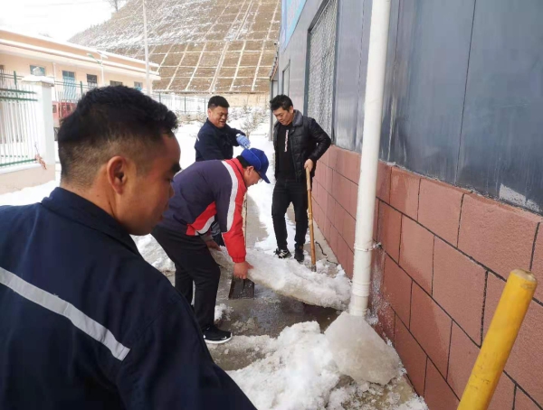 在共同努力下,經過將近4個小時奮戰,這場“戰天斗地除冰雪”的安全保衛戰終于進入尾聲,扶貧車間廠房周邊平地和主道上的厚厚冰雪基本清除,人員和車輛通行安全得到保障。