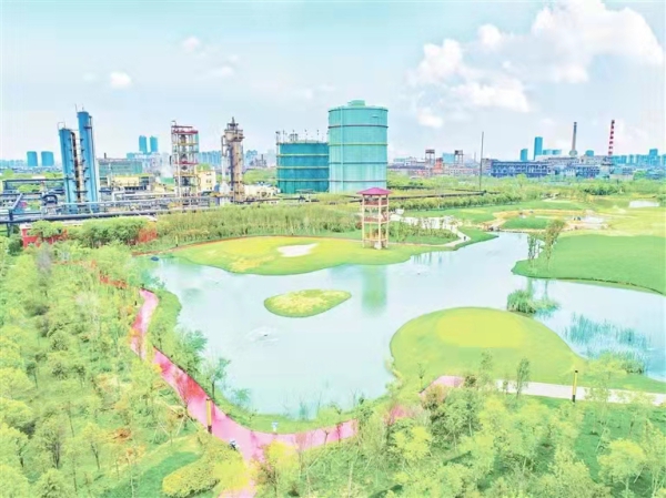 旗下的方大特鋼高爐與廠房掩映在綠樹之中,近10萬平方米的焦化廠濕地公園綠草青青,碧波蕩漾;九江鋼鐵花紅樹綠,生機勃勃,特色景點與長江“最美岸線”融為一體;萍安鋼鐵氣勢恢宏的原料場大棚、造型新穎的“高鐵”式參觀通道令人眼前一亮。