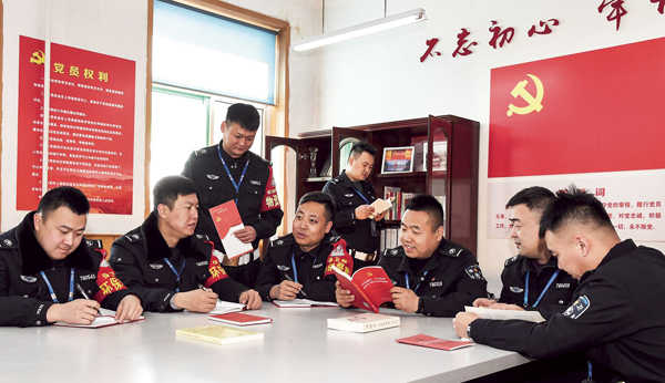 3月22日,中國寶武太鋼集團保衛部護衛支隊隊員在黨史學習教育中交流心得(如圖)。太鋼集團保衛部護衛支隊在黨史學習教育過程中,創新方法,注重實效,通過采取“三會一課”、主題黨日、舉辦讀書會等形式夯實學習基礎,營造學習氛圍,扎實推進黨史學習教育向縱深開展。 (特約通訊員 王旭宏 攝 通訊員 張偉 文)