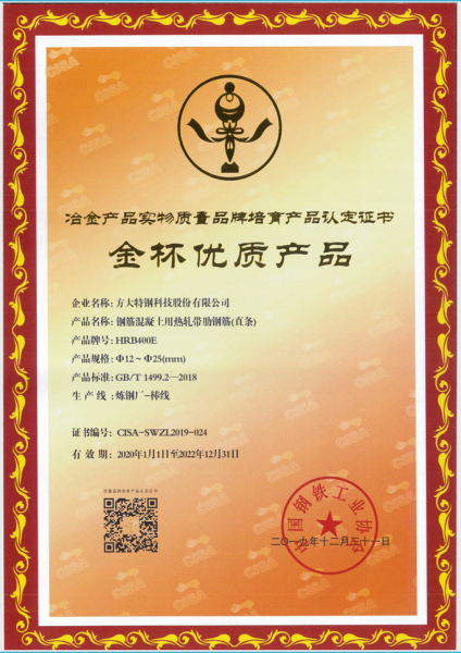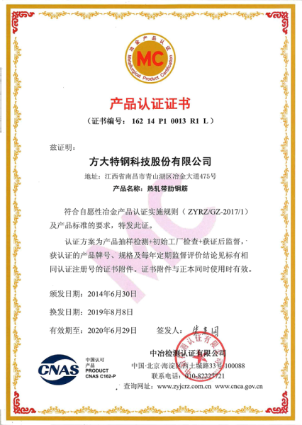 2017年以來,方大特鋼積極配合國家部委推廣高強鋼筋應用,及時淘汰HRB335和HPB235等普通鋼筋產品,將螺紋鋼產品強度等級提升至400MPa及以上等級。2019年,方大特鋼又協同江西省螺紋鋼產品主要生產企業,積極倡導和推動HRB400E高強抗震螺紋鋼在江西省的生產和應用,2019年下半年以來基本實現江西省400MPa級螺紋鋼全抗震化,極大地推動了省內螺紋鋼產品的質量等級提升。2020年,方大特鋼繼續開展更高強度螺紋鋼的研發,包括屈服強度600MPa以上的HRB600熱軋帶肋鋼筋及其他更高強度的鋼筋產品,高強鋼筋的應用可改善建筑結構中“肥梁胖柱”問題,提高建筑使用面積,增加建筑結構設計的靈活性,對提高我國鋼筋混凝土結構的綜合性能,推動重大工程的技術進步,提高建筑結構的安全性,促進鋼鐵產業的結構調整和節能減排等方面,具有重要的意義。