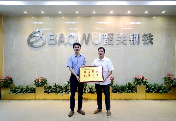 7月22日,廣東省南雄市南畝鎮黨委書記曾志明一行5人來到廣東韶鋼松山股份有限公司(簡稱韶鋼),向韶鋼送上2塊牌匾和一封感謝信,衷心感謝韶鋼對口幫扶南畝鎮樟屋村讓老百姓脫貧過上好日子。韶鋼黨委書記、董事長解旗,黨委副書記、工會主席張永生接受牌匾、感謝信,并與曾志明一行座談。