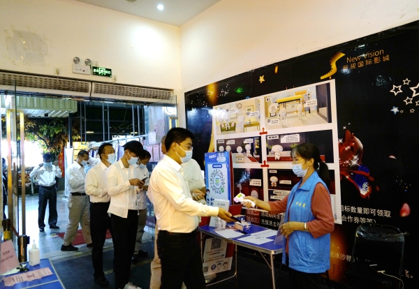 為做好新冠疫情防控工作,觀影人員進入影院均出示粵康碼、測量體溫,觀影全程佩戴口罩。(陳立新 馬韌)