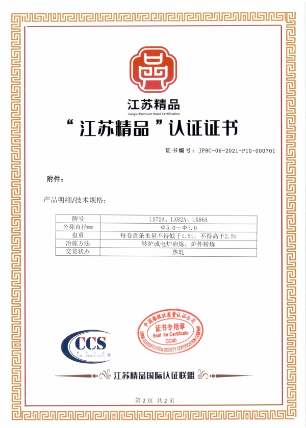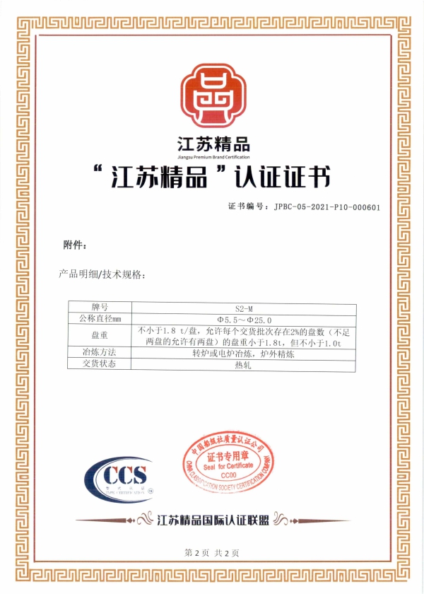 據悉,“江蘇精品”品牌是江蘇省質量發展委員會辦公室、市場監督管理局、發展和改革委員會、工業和信息化廳等八部門按照省委省政府推動江蘇省高質量發展走在全國前列的要求,以標準為引領,以認證為手段,通過對符合高標準、高品質要求的產品和服務進行第三方認證,形成一批自主創新、品質高端、服務優質、信譽過硬、市場公認的“江蘇精品”品牌群體。中天鋼鐵集團作為全省第二批“江蘇精品”重點培育企業之一,首次獲得“江蘇精品”的認證。該認證對中天集團實施品牌發展戰略、助推高質量發展具有重要意義。