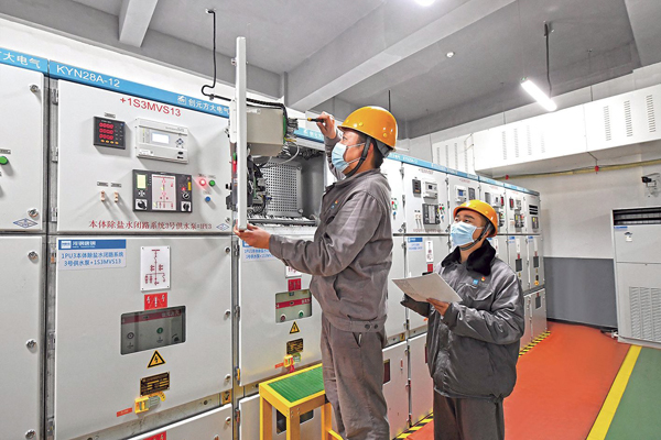 12月22日,河鋼唐鋼動(dòng)力部電氣點(diǎn)檢作業(yè)區(qū)黨員在1號(hào)高爐循環(huán)水高壓配電室進(jìn)行預(yù)防性試驗(yàn)。 (趙輝 攝)