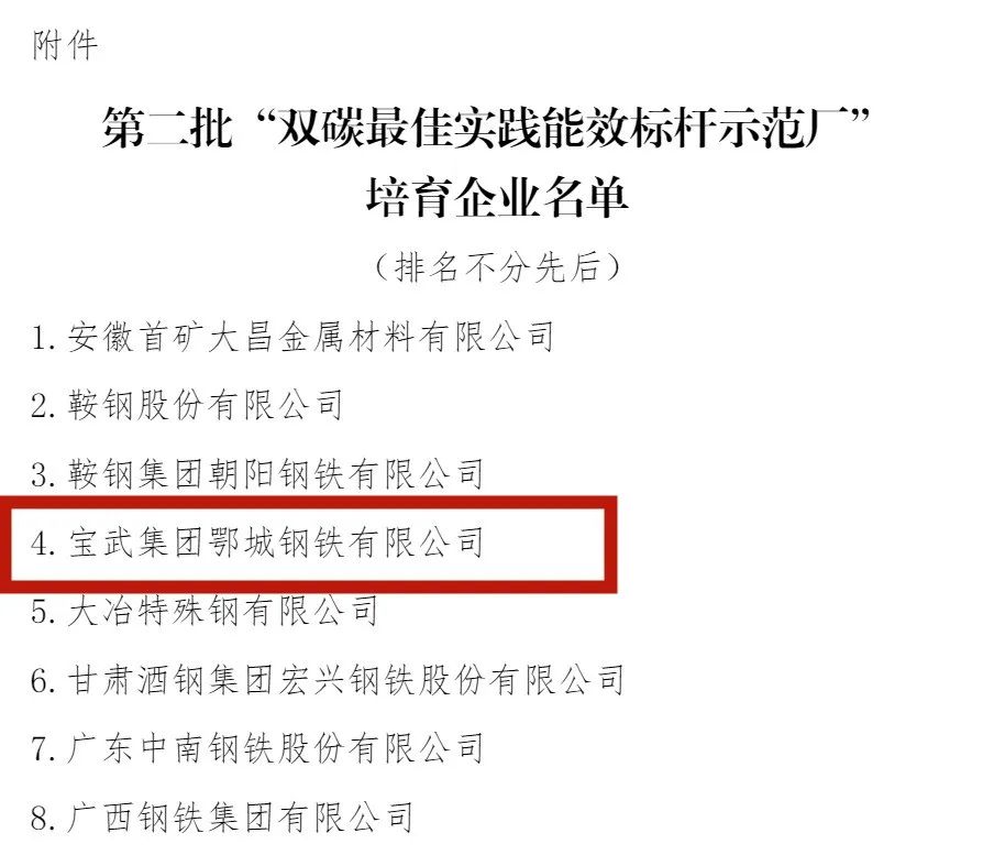 日前,中國鋼鐵工業協會公布了第二批“雙碳最佳實踐能效標桿示范廠”培育企業名單,鄂城鋼鐵入選。