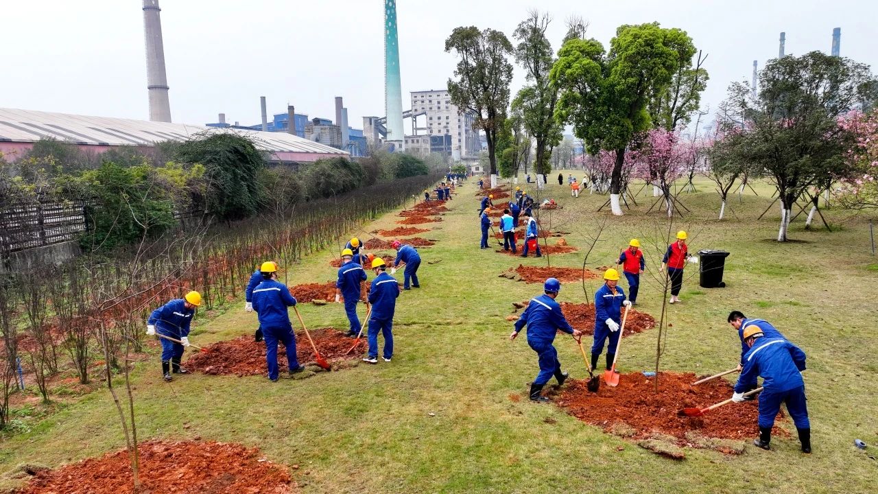 近年來,中南股份對2號門崗區域、煉鐵路等處進行了景觀改造,形成了以櫻花樹為主的景觀綠地,每年2、3月,廠區櫻花競相綻放,五彩繽紛、美輪美奐。為與員工、家屬、生態圈伙伴分享企業轉型升級、綠色發展的成果,中南股份于2023、2024連續兩年舉辦了“春風里-多彩韶鋼漫步文化活動”,受到社會各界廣泛好評。此次植樹地點在2號門崗西北側綠地內。