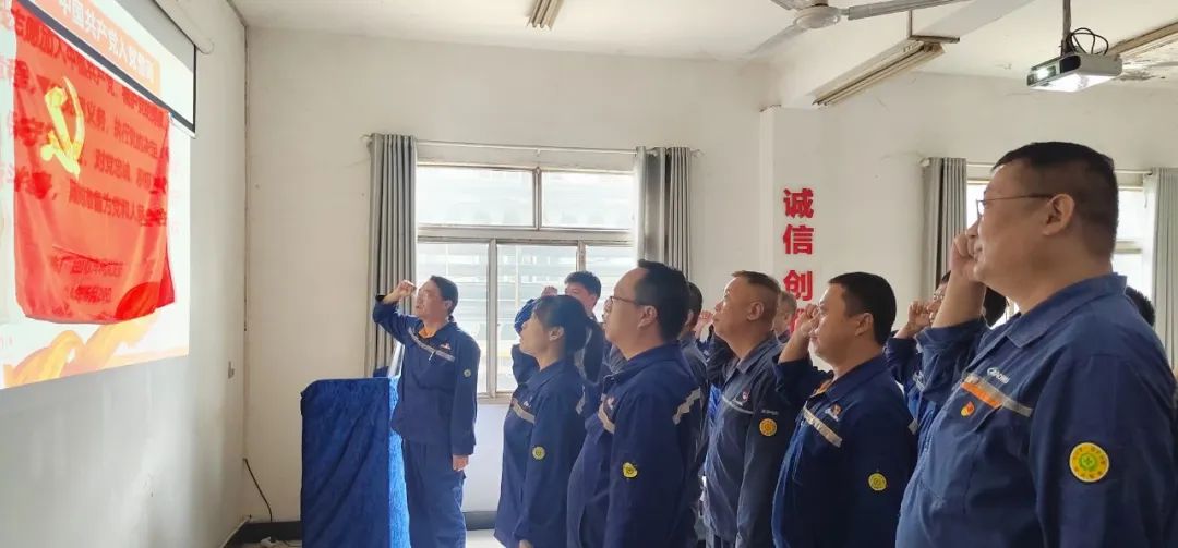 回收車間黨支部開展“迎七一 明責任 踐初心”主題黨日活動。黨員們重溫入黨誓詞,并表示將結合崗位實際,發揮黨員帶頭作用,圍繞車間降本指標開展攻關,用實際行動向黨的生日獻禮。(鄧蕾)