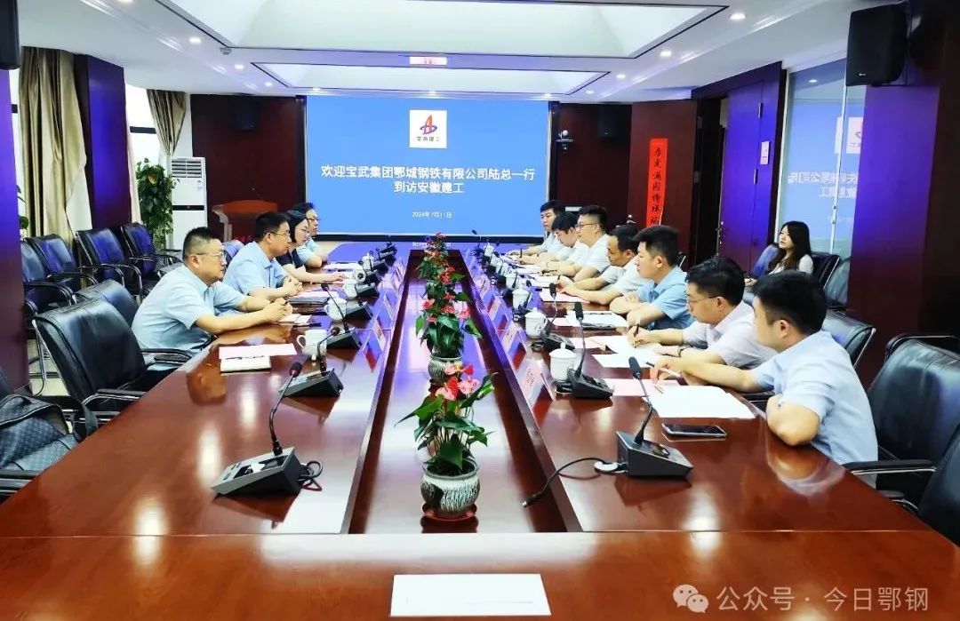 7月11日上午,陸隆文一行走訪安徽建工現代商貿物流集團有限公司,詳細了解客戶在產品質量、品種規(guī)格、交貨情況、物流運輸等方面的需求,就深化合作、商業(yè)模式創(chuàng)新等進行深入探討。
