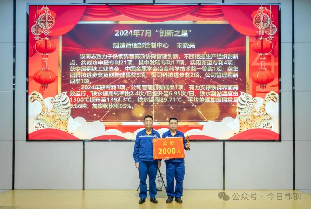 該公司黨委副書記(主持工作)、副董事長(主持工作)陸隆文為7月份崗位“創新之星”頒獎。