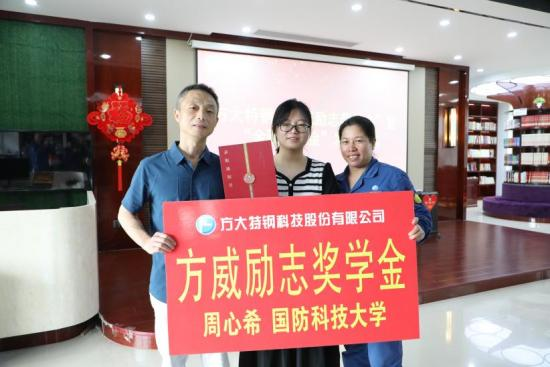 “再過十幾天我將走進(jìn)國防科技大學(xué)的校門,開始新的學(xué)習(xí)生活。感恩父母養(yǎng)育和教誨的同時(shí),也要感謝遼寧方大集團(tuán)為我提供了一筆不菲的獎(jiǎng)學(xué)金。接下來,我將帶著大家的期望和鼓勵(lì),帶著自己的夢(mèng)想和決心,努力學(xué)習(xí),奮發(fā)向前,爭(zhēng)取在科技的道路上走得更遠(yuǎn),為祖國的繁榮昌盛作出更大的貢獻(xiàn)。”“方威勵(lì)志獎(jiǎng)學(xué)金”獲得者,方大特鋼員工周立強(qiáng)、施建秀的女兒周心希由衷地說,目光中透著堅(jiān)定。