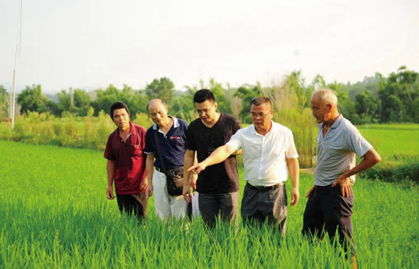 圖為吳建輝(左二)深入田間考察,助力村民脫貧增收。