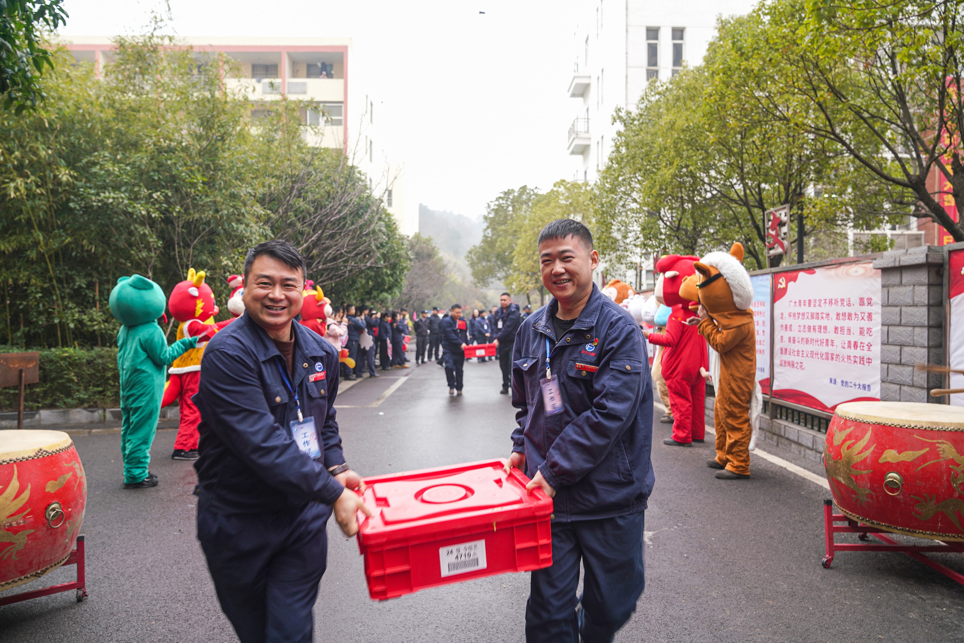 1月24日,方大九鋼處處燈籠高掛、喜氣洋洋、年味濃濃。上午9:58,紅包現金抵達該公司辦公大樓,大家興奮地揮舞著手中的小紅旗,手持“聽黨的話跟黨走”“在方大很幸福”等標語夾道歡迎。現場響徹著《好日子》的歡快旋律,龍騰獅躍、喜氣洋洋。