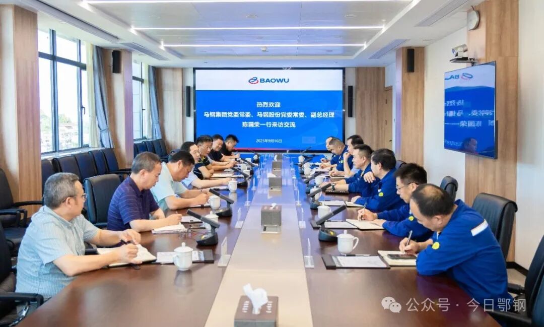 9月16日,馬鋼集團黨委常委、馬鋼股份黨委常委、副總經理陳國榮率隊到訪鄂鋼。鄂城鋼鐵公司總裁、黨委副書記黃大軍,高級副總裁夏峰熱情接待,雙方圍繞極致效率、機制變革等開展對標交流。