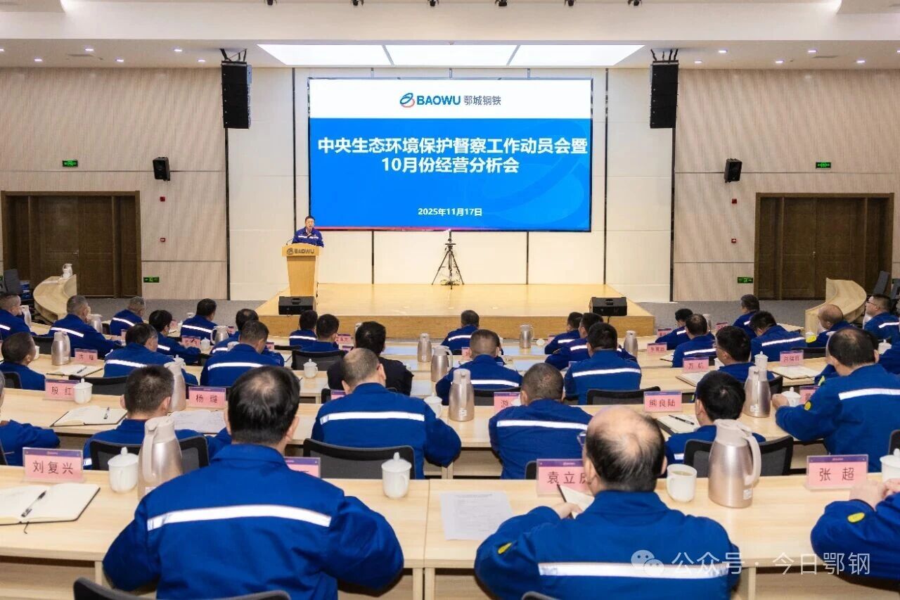 11月17日,鄂城鋼鐵公司召開中央生態環境保護督察工作動員會暨10月份經營分析會,認真學習領會、貫徹落實黨的二十屆四中全會精神,深入學習貫徹習近平生態文明思想和習近平總書記重要講話指示精神,傳達學習中央環保督察組督察中國寶武動員會精神,聚焦“環保督察、經營收官、風險防控和明年工作謀劃”等重點任務,持續攻堅、迎難而上、主動擔當,確保月度經營目標和各類風險受控。