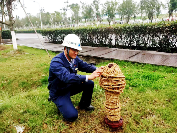 發電站內循環風機、余熱鍋爐處室外閥門較多,有一些安裝在不起眼的地方。張班長帶著老胡仔細排查,確保不出現“漏網之魚”。走到轉角處,一個閘閥出現在小張眼前,上面的草墊正隨風飄動,他趕緊拿著繩子將草墊重新捆綁,并用手拉緊確認。“我們班組靠近江邊,風大,如果繩子沒有綁緊風一吹草墊就飄走了,所以一定要將草墊緊緊地綁在設備上,這樣設備才能平穩過冬。”回過頭來,張班長語重心長地對老胡說道。