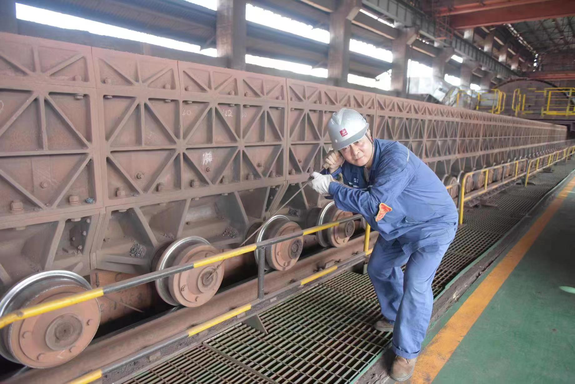 為充分發揮鐵前一盤棋聚合優勢,打造行業領先的鐵前一體化配礦方案,新余鋼鐵股份有限公司煉鐵廠積極主動將燒結、高爐配礦進行一體化綜合優化,確保爐料結構中燒結配比大于80%,做到精料經濟;并在確保高爐穩定順行的基礎上,瞄準攻關目標,落實攻關措施,堅決打贏三季度、完勝全年目標任務。圖為新鋼煉鐵廠燒結區的一名員工正在對燒結機進行點巡檢。(萬新東 胡喜梅)