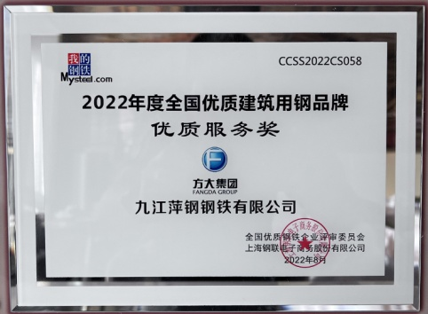 近日,由上海鋼聯(lián)電子商務(wù)股份有限公司、昆明鋼鐵控股有限公司等單位聯(lián)合主辦的2022(第十一屆)中國(guó)建筑用鋼產(chǎn)業(yè)鏈高峰論壇在云南昆明隆重召開(kāi)。會(huì)上,方大九鋼榮獲2022年度全國(guó)優(yōu)質(zhì)建筑用鋼品牌“優(yōu)質(zhì)服務(wù)獎(jiǎng)”稱(chēng)號(hào)。