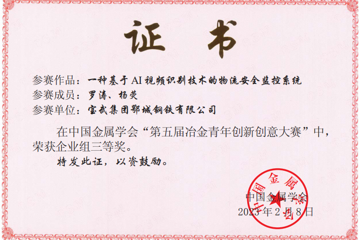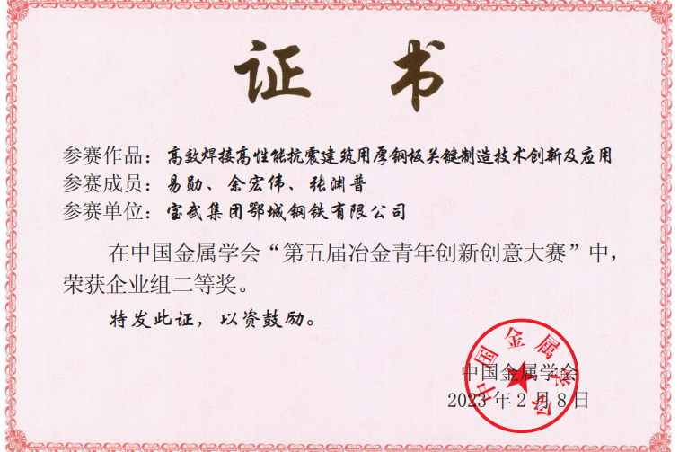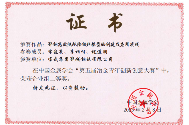 近日,中國金屬學會公布了第五屆冶金青年創新創意大賽結果。鄂城鋼鐵青年科技工作者獲得一等獎1個,二等獎2個,三等獎2個。