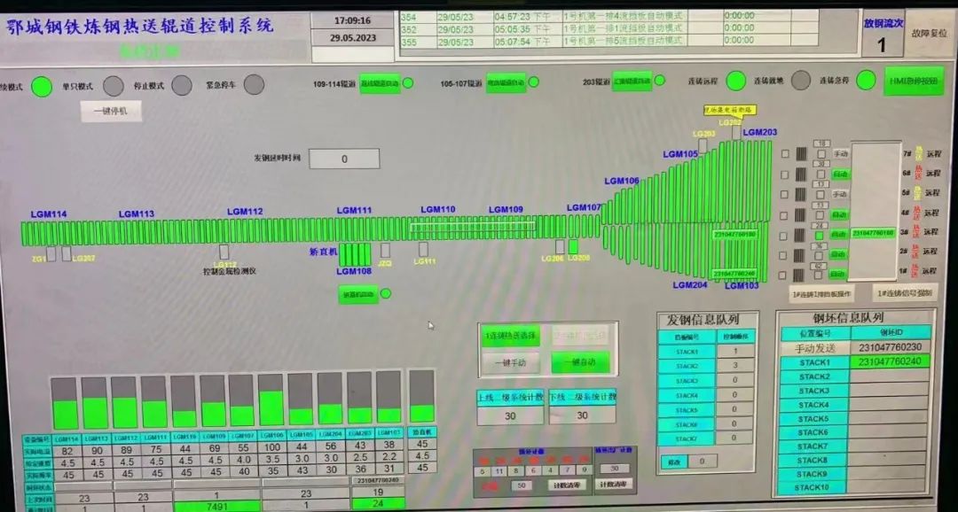 車間多次召開會議統一部署改造方案和工作任務,嚴格把關改造檢修任務,安排專人制定科學有效的施工方案、安全預案,編制鋼坯紅送設備改造施工網絡和設備消缺預案。對變頻驅動系統、過程控制程序和現場開關箱柜等方面進行規范施工,并且對施工原材料和設備進行質量控制,滿足施工質量需求,提高改造后設備精度和整體控制水平。