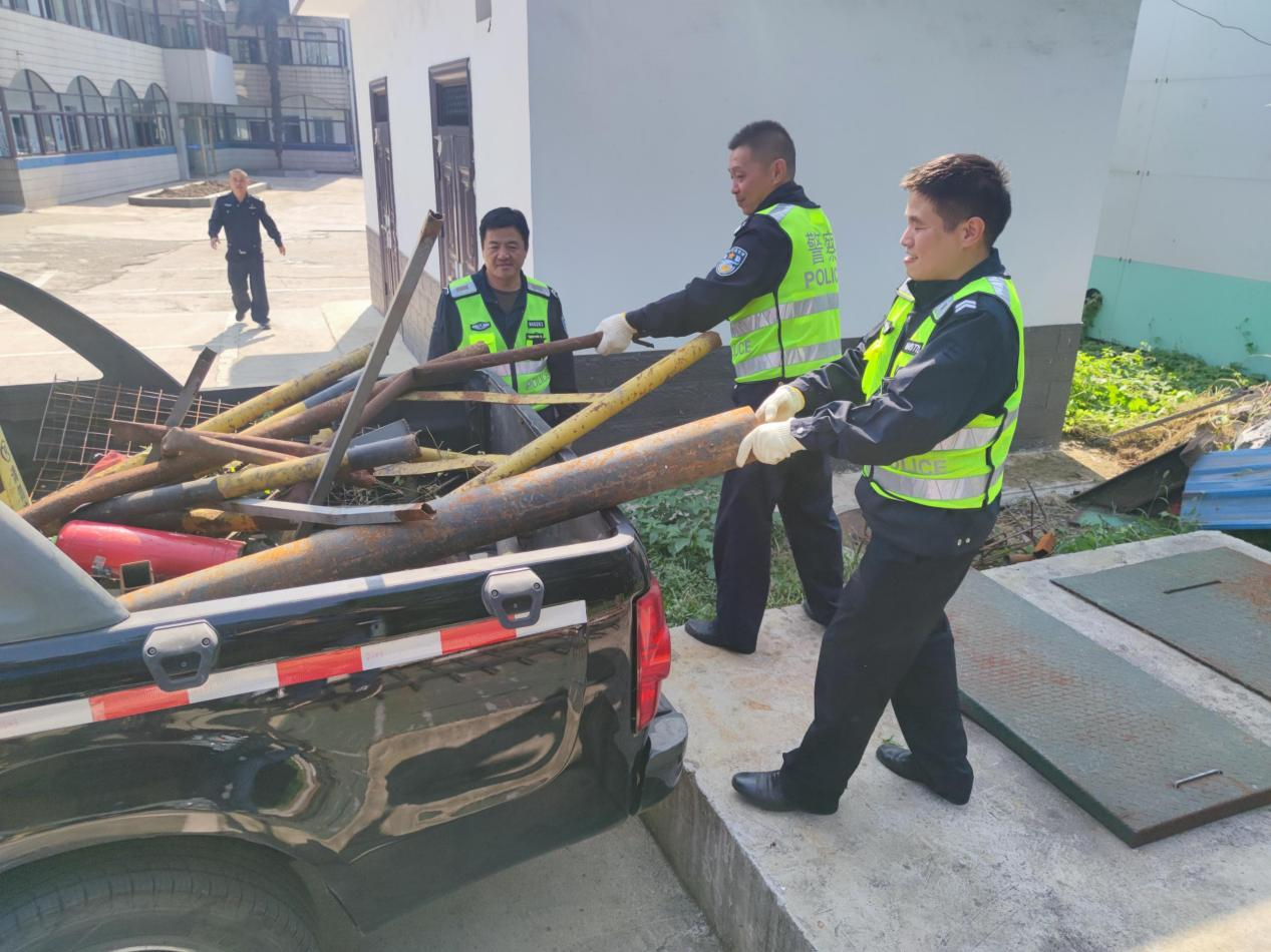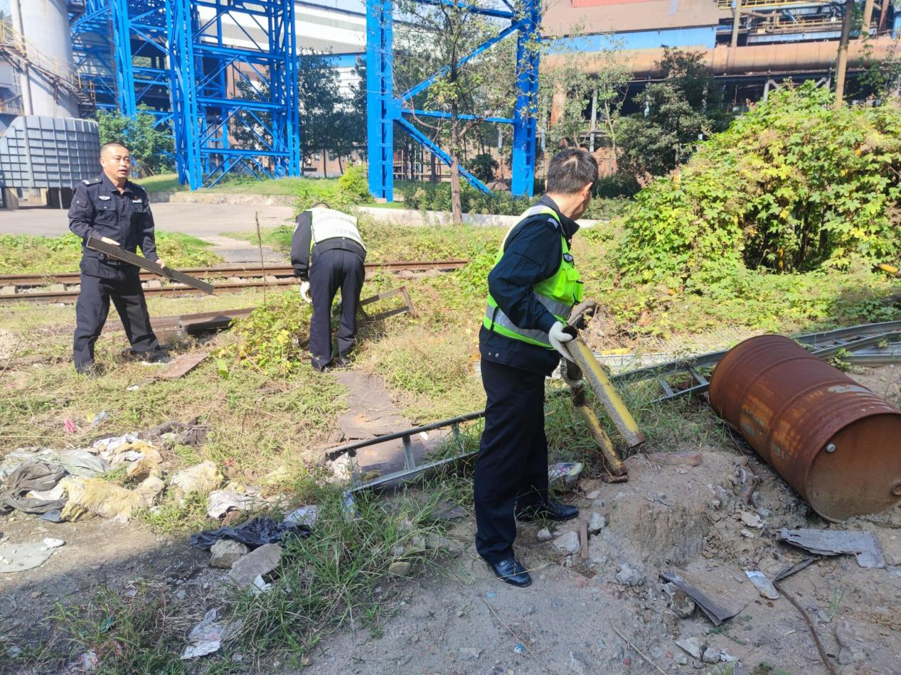 馬鋼保衛部交管巡邏隊員工作之余回收廢鋼資源