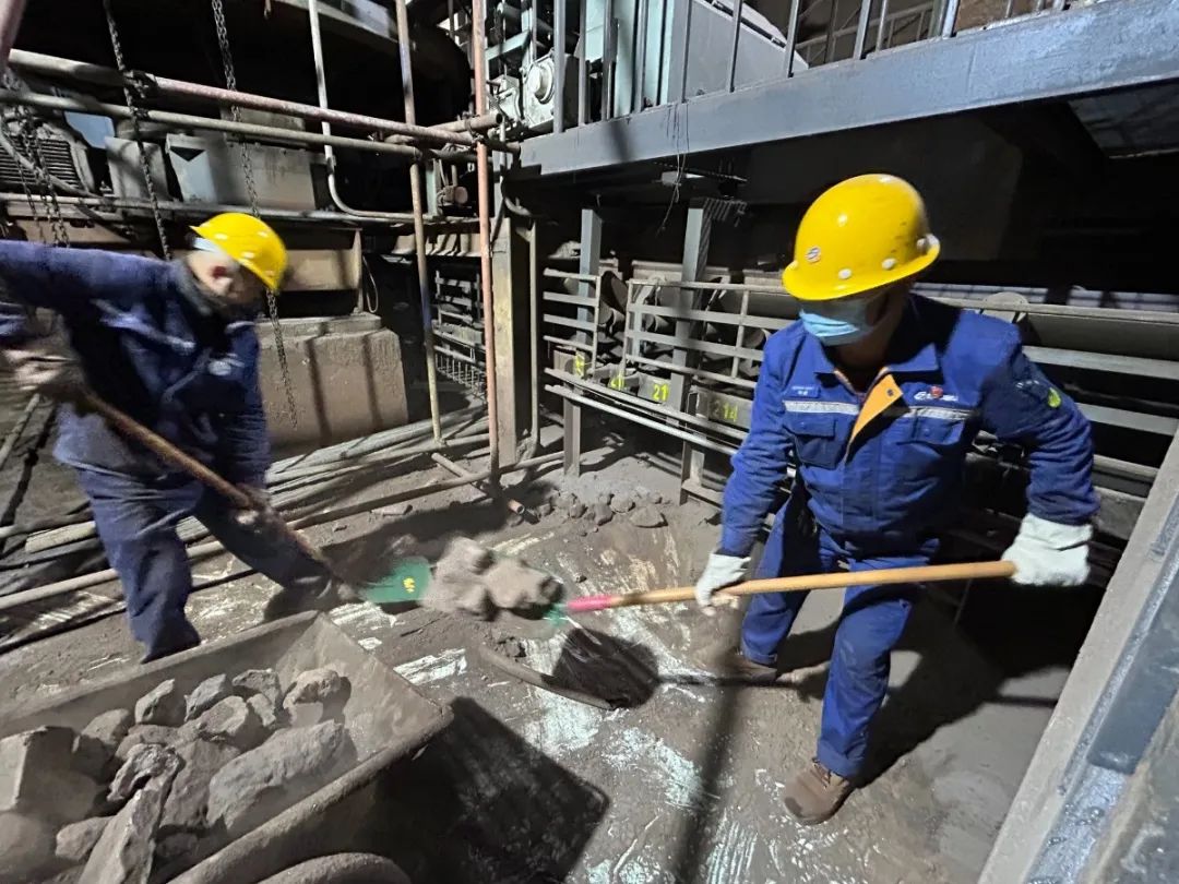作業區綜合管理工楊云雪,不顧臉頰上的汗水與生石灰混合帶來灼痛,剛剛還在皮帶沿線挨個分發瓶裝水,僅一會兒工夫,她又在清理現場勞動了。巾幗不讓須眉,這也給一起勞動的同志們更大的動力,在凜冽的風中,他們的衣服被汗水浸透,手掌被磨出血泡,但他們的眼神卻更加堅定,步伐更加穩健。