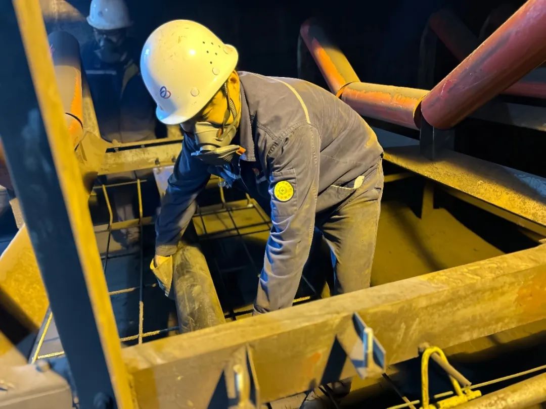 許高敏、張明鵬和輪班主要操作員工帶領的托輥、擋皮更換隊也踏入了檢修的戰場。他們面臨的是一場與時間和困難較量的硬仗。現場,交叉作業頻繁得如同繁忙的交通樞紐,各系列檢修人員都在緊張地忙碌著。皮帶機架改造占據了寶貴的空間,使得作業區域變得狹窄而擁擠。在這樣的環境下,他們需要對P302、H302、H303皮帶上共計1100個破損托輥、30擋支架進行更換,同時還要全面更換P302、H302、D303、F311這四條皮帶。