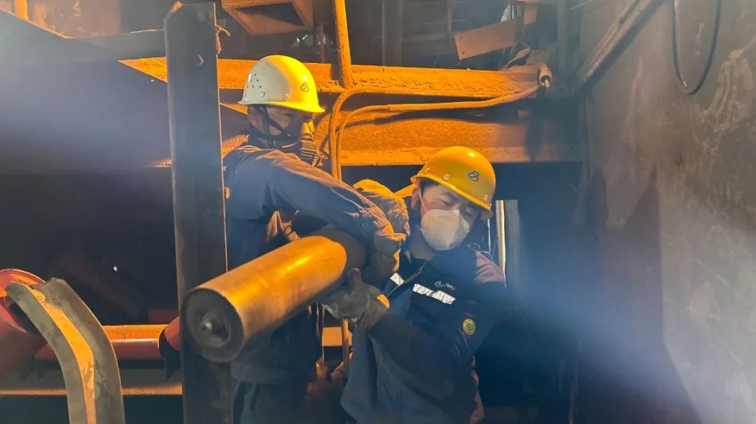 新托輥和新皮帶被一一搬運到現場,舊托輥和舊皮帶則需要一一拆卸下來。由于托輥重量大,皮帶長度長達約690米,這使得備件的轉運和安裝變得異常困難。狹小范圍沒法使用現代化的搬運設備,他們就依靠人工進行。“一二三起,一二三起”,肩扛、手抬、拖拽……他們用盡全身力氣,將一個個沉重的托輥和長長的皮帶運送到指定位置。在安裝過程中,他們更是小心翼翼,生怕出現任何差錯。每個托輥的安裝位置都要經過精確測量,每個螺絲都要擰緊到位。