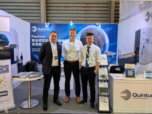 在Quintus的展臺上,參觀者可以近距離探索各種類型的Quintus Flexform?液壓成型設備,該設備可以為用戶削減高達 90% 的模具成本和縮短 50% 以上的生產周期,同時還能提供產品設計上的靈活性。許多參觀者還親眼目睹了使用Quintus Flexform?技術成型的零件,并對其的精度和復雜性表達了高度的贊賞。