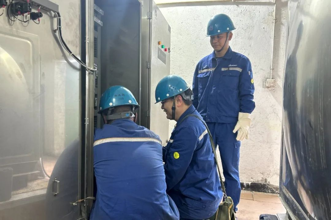 ▲圖為班組員工對噴淋系統優化改造