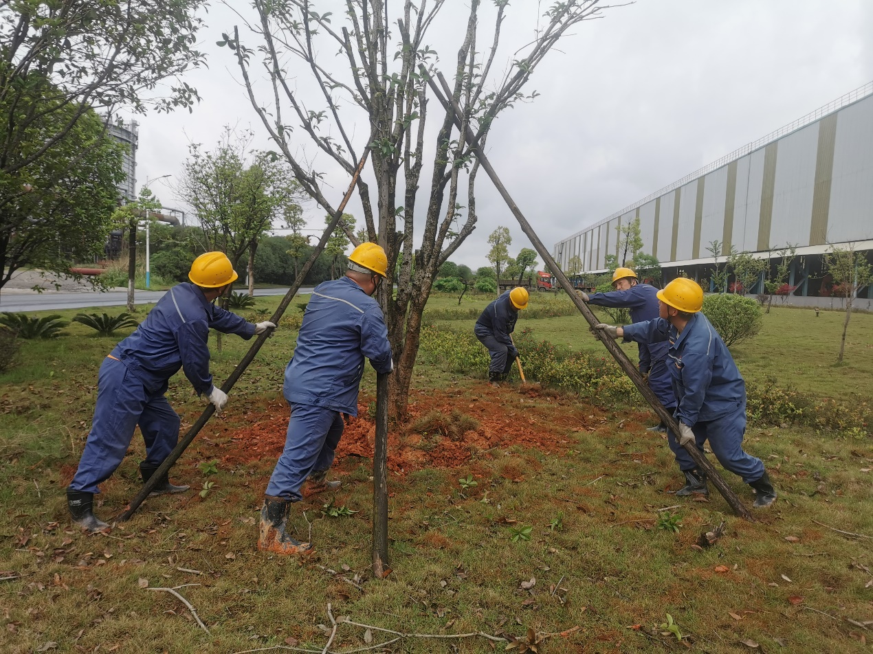 4月16日,傍晚的一場狂風暴雨刮倒了新鋼集團廠區內的部分樹木。次日上午,負責植樹護林工作的新鋼集團后勤文旅事業部園林綠化中心的干部職工,一大早就帶著護林工具趕赴現場,將一棵棵倒下的樹木扶正并加固,同時對廠區綠化帶進行全面巡查。圖為園林綠化中心綠化班職工正在將一棵被大風刮倒的桂花樹扶正加固。(萬新東)