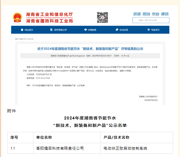 近日,湖南省工業和信息化廳公布了2024年度湖南省節能節水“新技術、新裝備和新產品”名單,鐳目公司的電動非正弦振動控制系統成功入選。這一榮譽不僅體現了鐳目公司在技術創新方面的卓越實力,也彰顯了其在推動工業綠色低碳發展方面的積極貢獻。