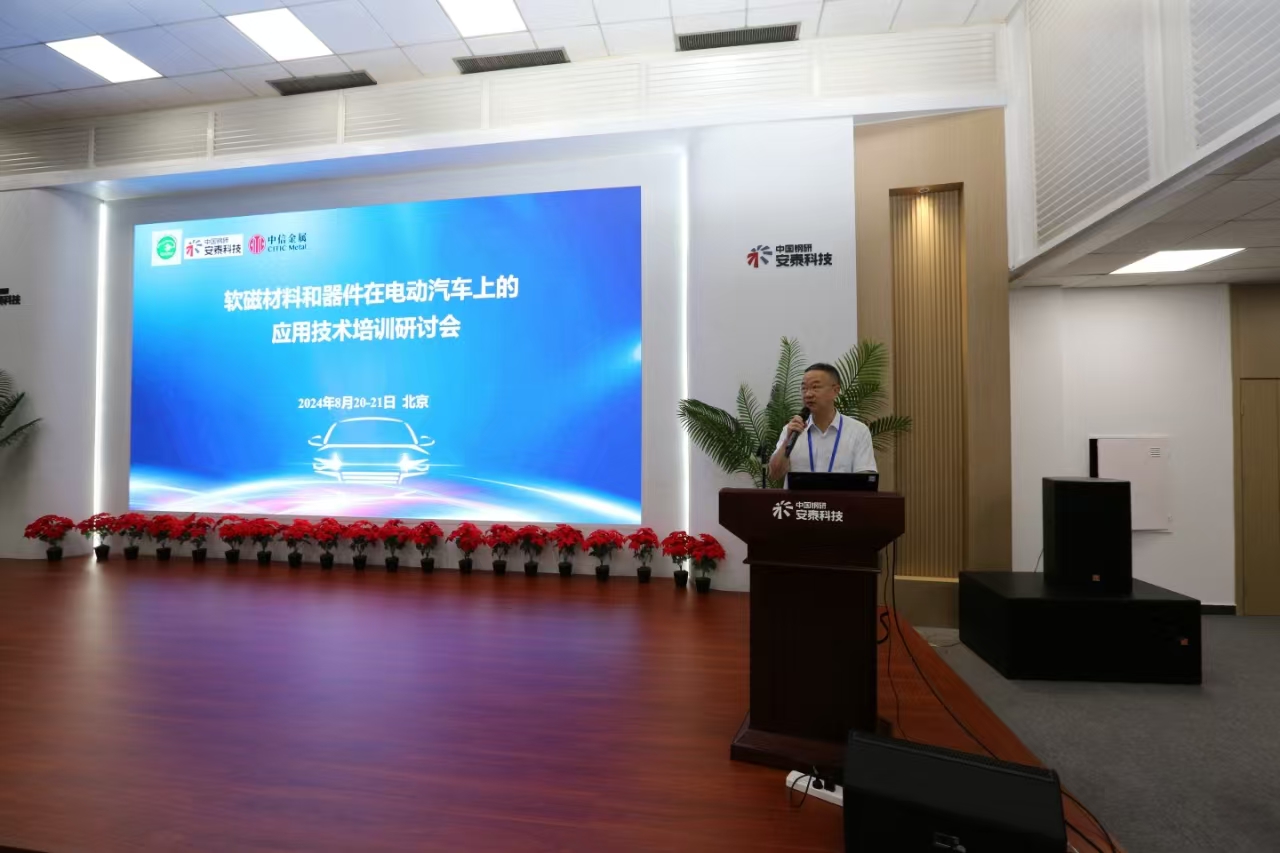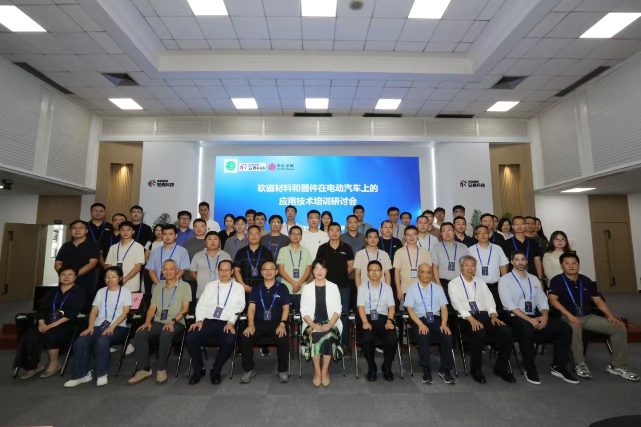 2024年8月20日-21日,由電動(dòng)汽車產(chǎn)業(yè)技術(shù)創(chuàng)新戰(zhàn)略聯(lián)盟(以下簡(jiǎn)稱“聯(lián)盟”)與中信金屬股份有限公司(以下簡(jiǎn)稱“中信金屬”)和安泰科技股份有限公司(以下簡(jiǎn)稱“安泰科技”)共同組織的軟磁材料和器件在電動(dòng)汽車上的應(yīng)用技術(shù)培訓(xùn)研討會(huì)在安泰科技永豐產(chǎn)業(yè)園成功舉辦。中國(guó)汽車工程學(xué)會(huì)汽車電動(dòng)化研究中心副主任劉國(guó)芳女士、中信金屬副總經(jīng)理兼總工程師郭愛(ài)民、安泰科技副總經(jīng)理王鐵軍、巴西礦冶公司商務(wù)專家尤里·米蘭達(dá)、北京交通大學(xué)教授盧志超,以及來(lái)自整車、電機(jī)電控、器件企業(yè)和高校、科研院所的70余位代表參加了本次會(huì)議。