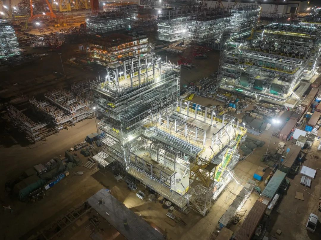 在位于渤海灣的青島,不久前,巴油40萬噸級FPSO(浮式生產儲卸油裝置,俗稱“海上石油工廠”) P79項目12個單體全部封頂。