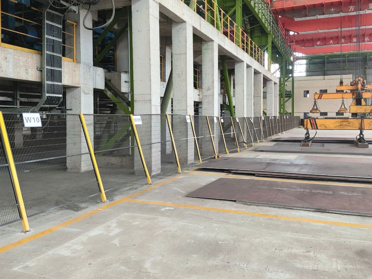 如何使普棒末端庫場地利用率最大化,滿足中厚板中間產品的倉儲需求?成品發(fā)運工作小組查詢了2023年至2024年廠內中厚板中間產品的生產數(shù)據(jù),從鋼種、厚度、長度、吊裝頻率等多維度分析,對場地面積進行合理劃分,經過多次桌面推算后,確定庫房規(guī)劃圖,保證“一物一位、一位一標識、快速吊運、標準管控”的高效管理。
