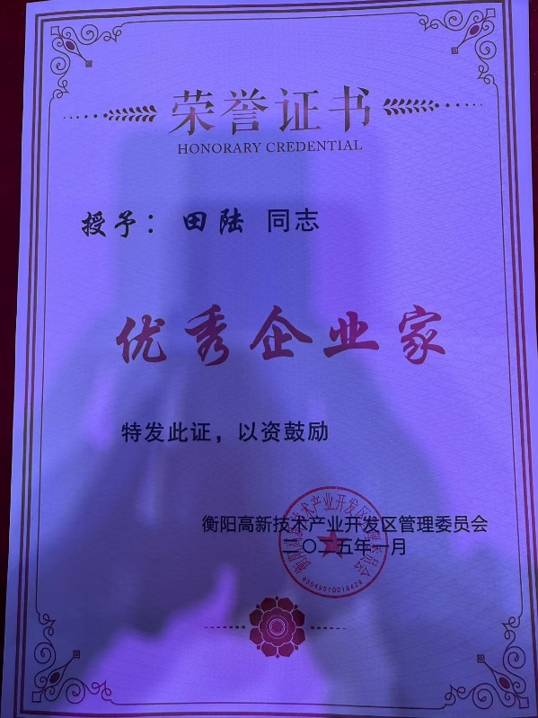 2025年1月17日上午九點,湖南省衡陽市高新區2025年度經濟工作會議暨表彰大會隆重召開。衡陽鐳目科技有限責任公司暨董事長田陸博士分別榮獲科技創新先進企業暨優秀企業家殊榮。并榮獲獎金10萬元。